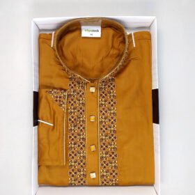 Exclusive Embroidery Cotton Panjabi-Mustard Yellow