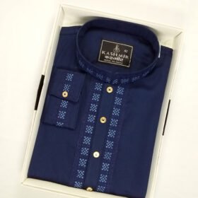 Exclusive Embroidery Cotton Cuff Sleeve Panjabi-Navy Blue