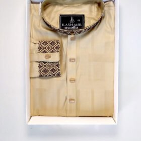 Premium Embroidery Cuff Selves Panjabi For Men-Biscuit Color